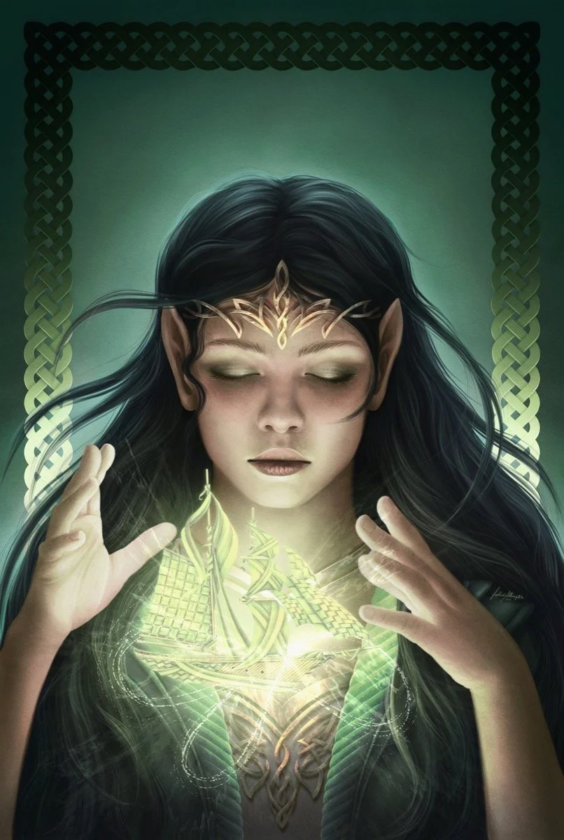 A collection of character illustrations, concept art, and poster designs inspired by fantasy and storytelling.